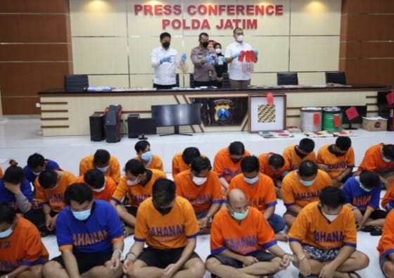 Hal tersebut disampaikan Kabid Humas Polda Jatim Kombes Pol Dirmanto, bersama Dirkrimsus Kombes Pol Farman dan Dirkrimum Kombes Pol Totok Suharyanto, di ruang pres rilis Humas Polda Jatim.