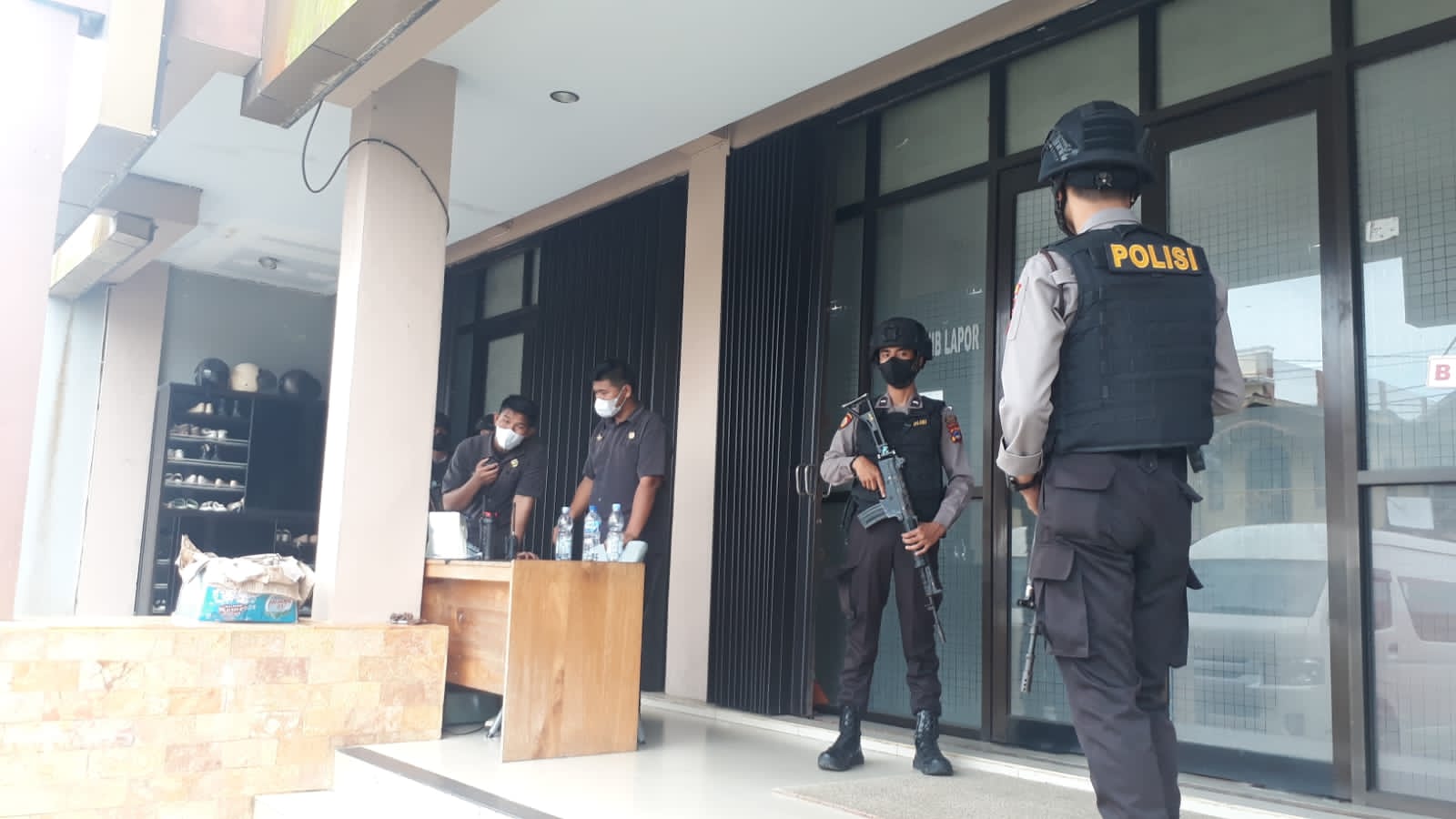 Sejumlah petugas berjaga di lokasi, tim KPK sedang melakukan penggeledahan di dalam kantor tersebut.