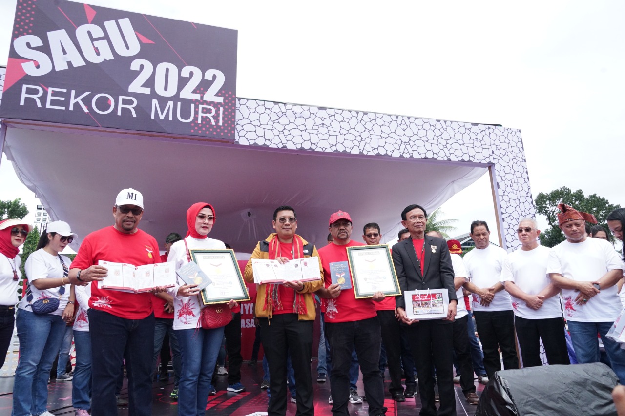 Sementara itu, Gubernur Maluku Murad Ismail menyampaikan bahwa rekor muri ini menjadi momentum penting guna menyatakan kemerdekaan dan kedaulatan pangan di Maluku. “Kita orang Maluku bangga memiliki sagu sebagai pangan lokal sumber karbohidrat yang lezat dan sehat. Sagu bukan hanya pangan kita, tapi juga identitas budaya yang keberadaannya patut kita jaga dan lestarikan,” urainya.