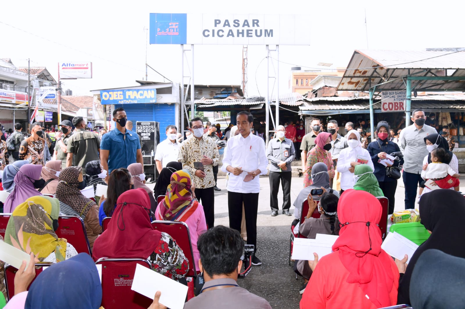 Turut mendampingi Presiden dan Ibu Iriana dalam kunjungan ke Pasar Cicaheum yaitu Menteri Sosial Tri Rismaharini, Gubernur Jawa Barat Ridwan Kamil beserta istri, dan Wali Kota Bandung Yana Mulyana.