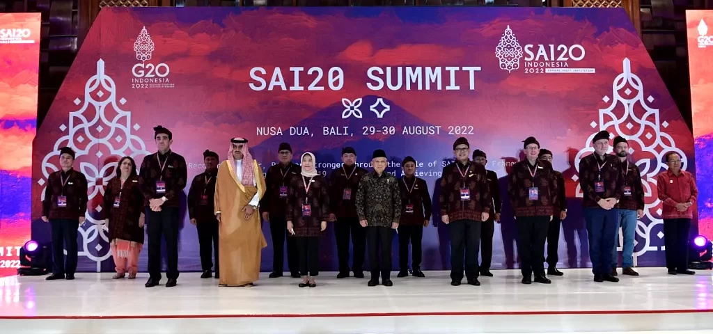 INDONESIAUPDATE.ID – Wakil Presiden (Wapres) Ma’ruf Amin menghadiri Konferensi Tingkat Tinggi (KTT) Supreme Audit Institutions 20 (SAI20) Tahun 2022, Senin (29/08/2022), di Sofitel Bali Nusa Dua Hotel, Bali. Wapres menilai, KTT SAI20 ini memiliki peran penting sebagai pemandu bagi pemerintah untuk menjaga disiplin dalam pengelolaan anggaran keuangan negara termasuk di dalam menghadapi dampak pandemi COVID-19 dan tantangan krisis global saat ini