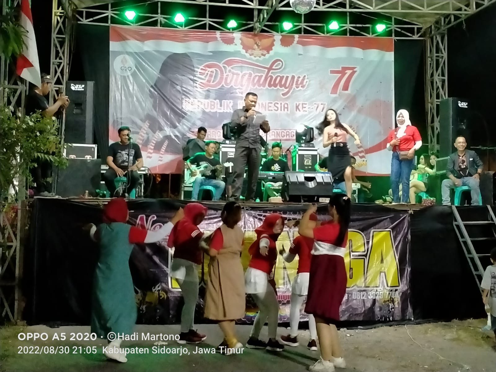 INDONESIAUPDATE.ID – Dalam rangka memperingati hari kemerdekaan RI ke – 77 Lingkungan RW 07 Kelurahan Urangagung Kecamatan/Kabupaten Sidoarjo, Jawa timur pada puncak acara mengadakan panggung hiburan rakyat bersama orkes melayu Buangga, Selasa (30/8/2022).