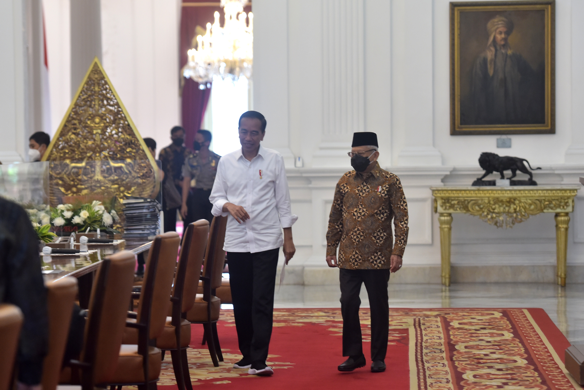 Presiden Jokowi didampingi Wapres Ma’ruf Amin tiba Istana Merdeka untuk memimpin ratas VoA dan Kitas, Jumat (09/09/2022). (Foto: Humas Setkab/Agung)