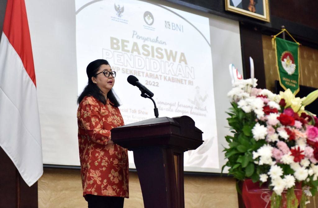 INDONESIAUPDATE.ID – Dharma Wanita Persatuan (DWP) Sekretariat Kabinet (Setkab) menyerahkan Beasiswa Pendidikan dan Tali Kasih DWP Setkab Tahun 2022, di Aula Lantai I Gedung III, Kementerian Sekretariat Negara, Jakarta, Jumat (16/09/2022) pagi.