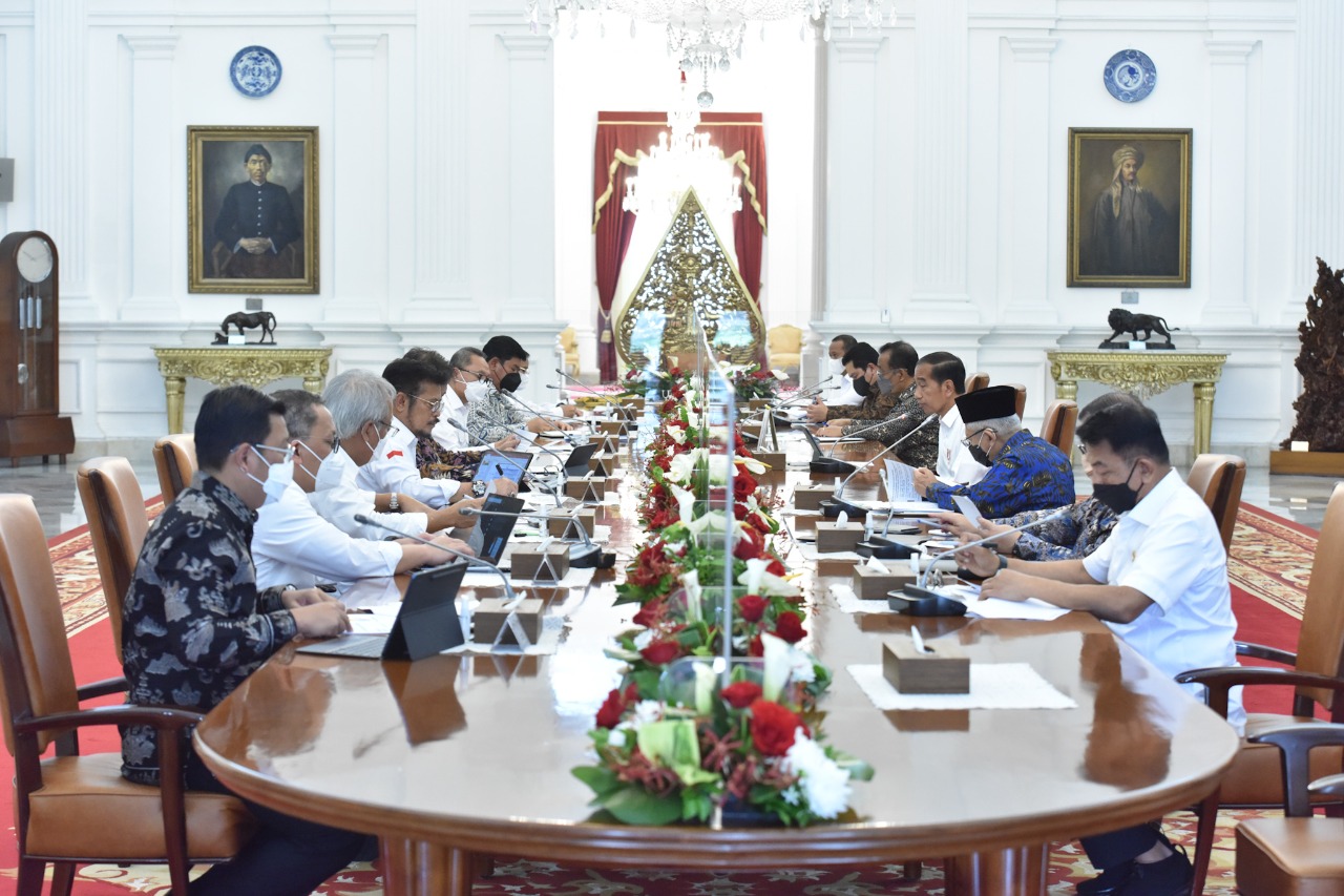 Kepala Badan Pangan Nasional/National Food Agency (NFA) Arief Prasetyo Adi (kiri) menghadiri Rapat Terbatas yang dipimpin Presiden RI Joko Widodo, di Istana Negara, Jakarta, (19/9). Dalam kesempatan tersebut dibahas sejumlah agenda diantaranya peningkatan produktivitas cabai, bawang merah, dan kedelai. Rapat dihadiri sejumlah Menteri Kabinet Indonesia Maju dan Kepala Lembaga terkait.