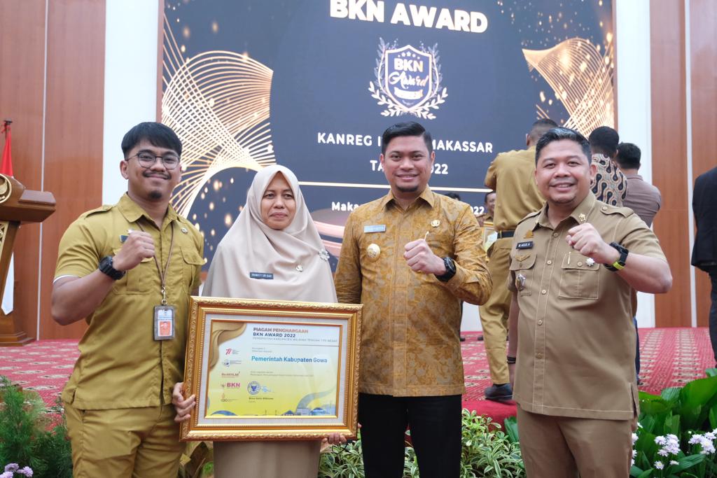 Penghargaan yang diterima pada Kategori Penerapan Pemanfaatan Data Sistem Informasi dan Computer Assisted Test (CAT) Pemerintah Kabupaten Wilayah Tengah Tipe Besar. Penghargaan ini diserahkan oleh Wakil Kepala BKN, Supranawa Yusuf kepada seluruh penerima award khususnya pada Wilayah Regional IV BKN yang didalamnya termasuk Kabupaten Gowa.