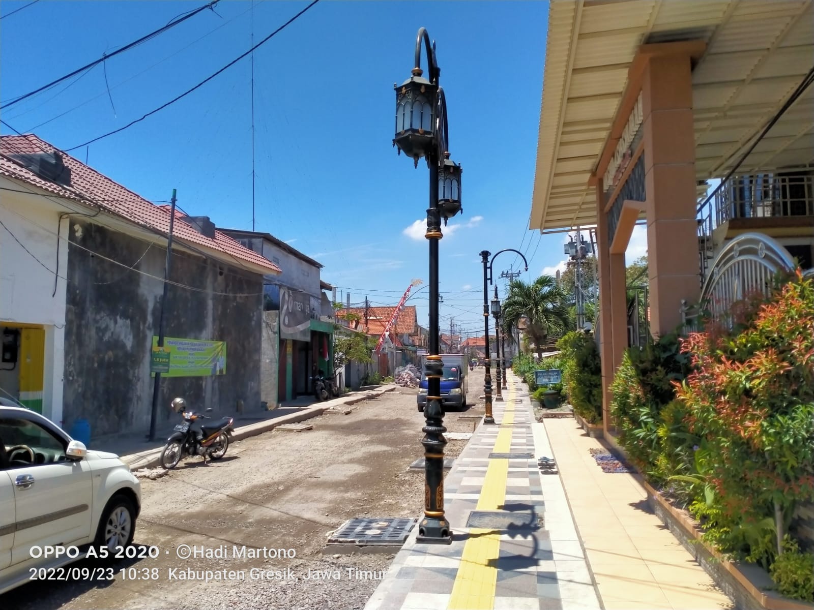Sementara, di jalan Langon dan Kyai Zubair trotoar dan ornamen lampu hias sudah terpasang dan terkonekting, tinggal pengaspalan saja. terang Arif