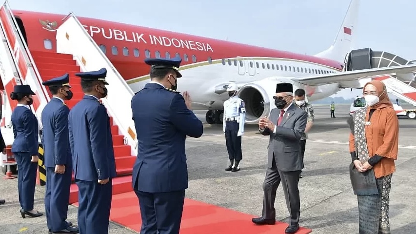 Menggunakan Pesawat Kepresidenan BBJ2/A-001, Wapres dan rombongan lepas landas dari Bandara Internasional Halim Perdanakusuma Jakarta menuju Bandara Internasional Haneda Tokyo, Jepang sekitar pukul 08.25 WIB.