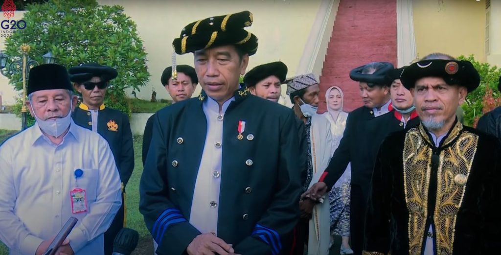 INDONESIAUPDATE.ID – Dalam kunjungan kerja ke Provinsi Maluku Utara, Presiden RI Joko Widodo (Jokowi) dianugerahi Gelar Kehormatan Adat Kesultanan Ternate dalam acara yang diselenggarakan di Kedaton Sultan Ternate, Kota Ternate, Rabu (28/09/2022).