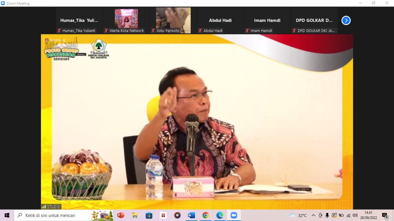 Hal tersebut merupakan intisari dari acara Focus Group Discussion (FGD) Series #3 ‘Mencari Figur Ideal Penjabat (Pj) Gubernur DKI Jakarta’, di Kantor DPD Golkar DKI Jakarta, Kecamatan Menteng, Jakarta Pusat, Rabu (28/9).