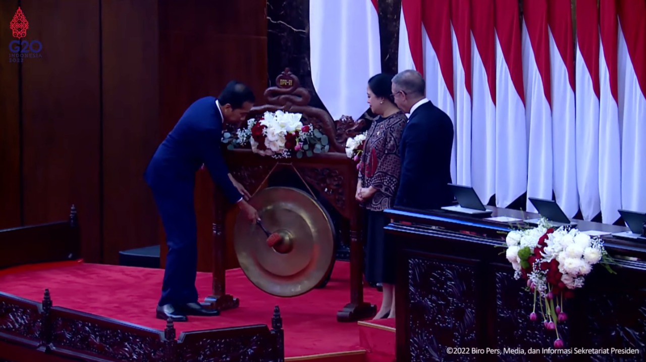 Presiden Jokowi secara resmi membuka sidang ke-8 Parlemen G20, di Senayan, Jakarta, Kamis (06/10/2022). (Sumber: Tangkapan Layar)