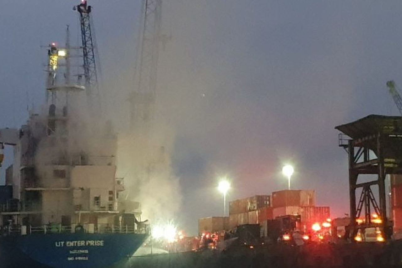 INDONESIAUPDATE.ID – Kapal kontainer Lit Enterprise yang memuat ratusan peti kemas terbakar saat hendak sandar di Pelabuhan Tanjung Perak, Kota Surabaya, Jawa Timur, Kamis (13/10).