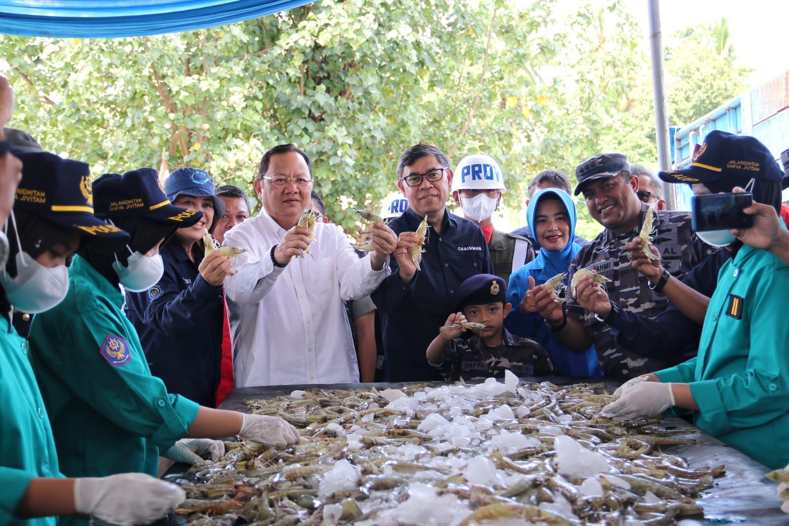 10 tambak tersebut merupakan lahan praktik siswa SUPM/Taruna Politeknik dengan sistem piket harian, dengan target realisasi PNBP sekitar Rp700 jutaan atau 120 persen. Usai panen, Kepala BRSDM beserta Ketua Komisi IV DPR RI dan rombongan kunjungi penyortiran udang yang telah dipanen, oleh siswa program studi Teknologi Pengolahan Hasil Perikanan (TPH).