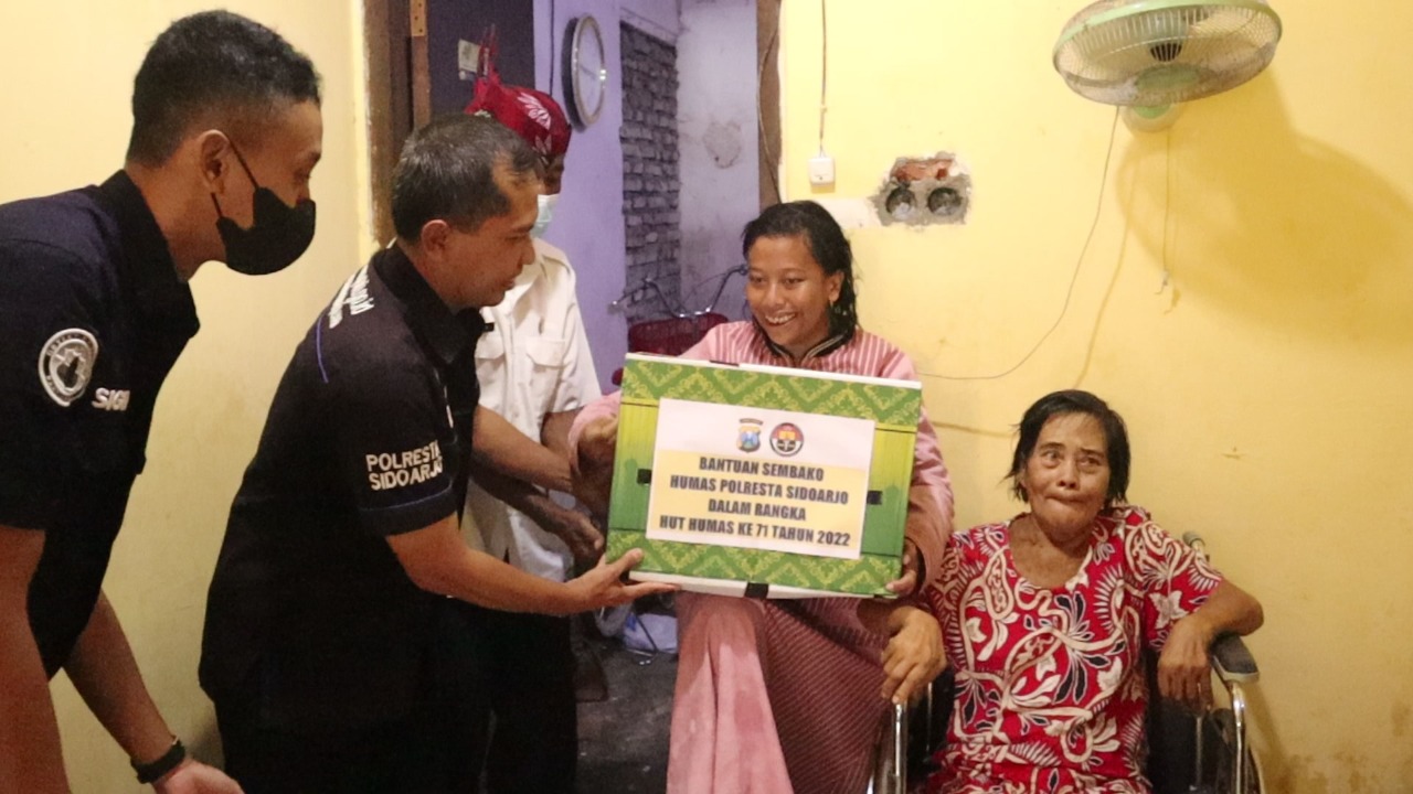 Ps. Kasi Humas Polresta Sidoarjo Iptu Tri Novi Handono menjelaskan, dari Si Humas Polresta Sidoarjo dalam rangka menyambut Humas Polri ke-71 memberikan bantuan sosial berupa sembako kepada Ibu Tutik Sukani.