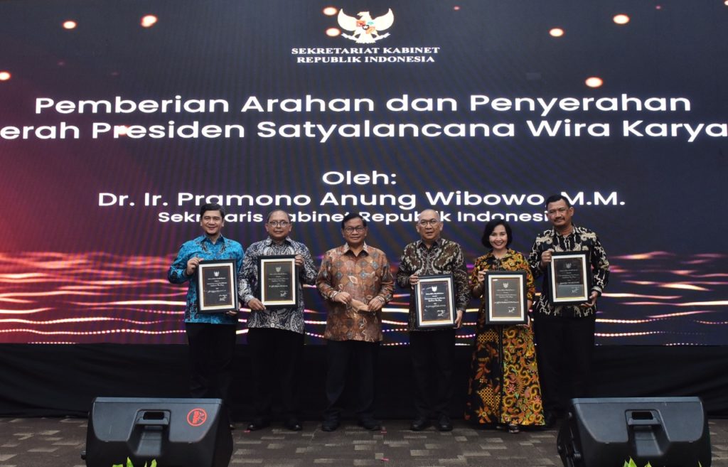 INDONESIAUPDATE.ID – Sekretaris Kabinet (Seskab) Pramono Anung menyerahkan Anugerah Tanda Kehormatan Satyalancana Wira Karya Tahun 2022 kepada lima orang Aparatur Sipil Negara (ASN) Sekretariat Kabinet, Jumat (21/10/2022), di Aula Serba Guna, Gedung 3, Kementerian Sekretariat Negara, Jakarta.