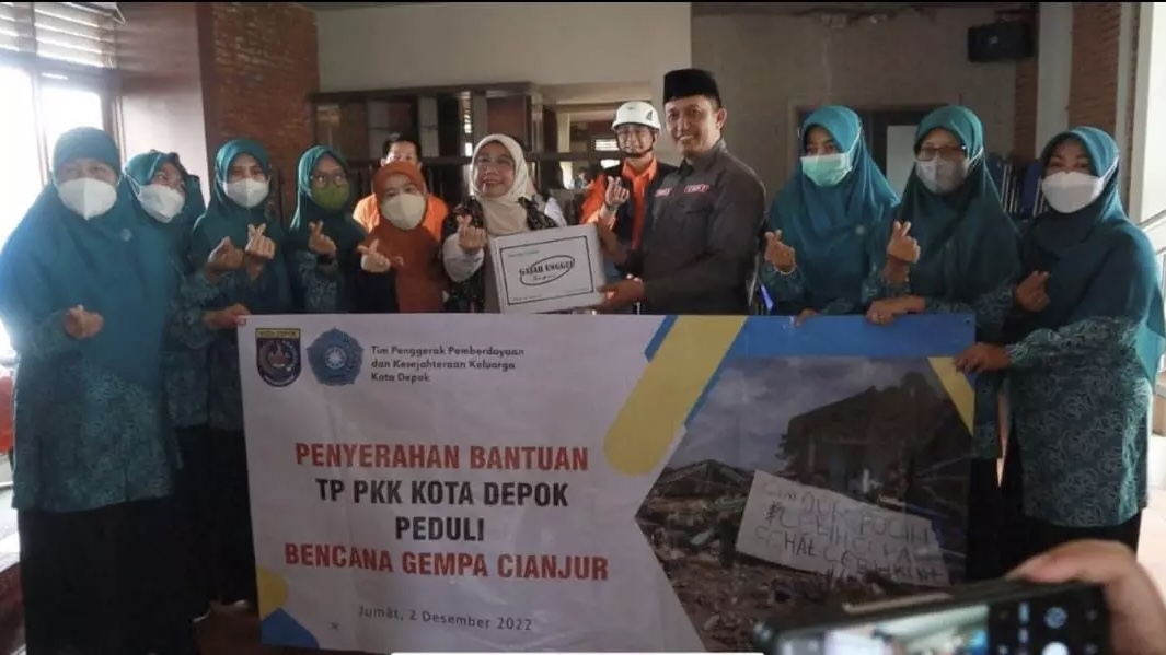 Ketua TP-PKK Kota Depok, Elly Farida menjelaskan, bantuan ini datang dari TP-PKK tingkat kelurahan, kecamatan, hingga kota. Tadi pagi, rombongan TP-PKK Kota Depok langsung menyambangi posko utama Tim Depok Peduli Cianjur di Pesona Wisata Puncak, Kecamatan Pacet, Kabupaten Cianjur.