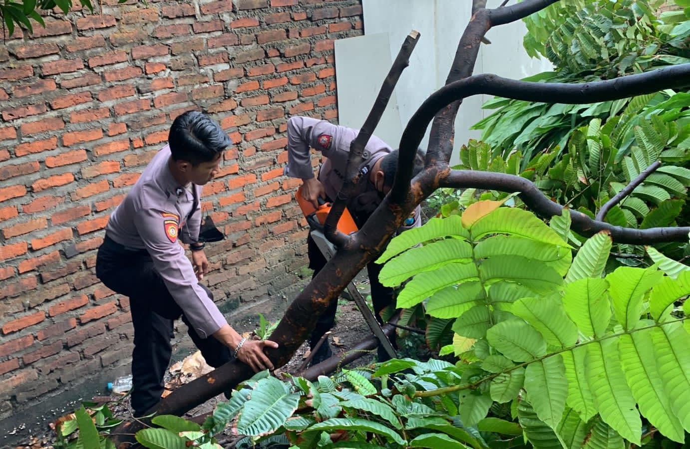 Selain itu, banyak juga pohon tumbang. Karenanya personel Polisi, TNI, BPBD, relawan bersama warga melakukan kerja bakti bersama untuk membersihkan puing-puing dan pembenahan rumah warga.