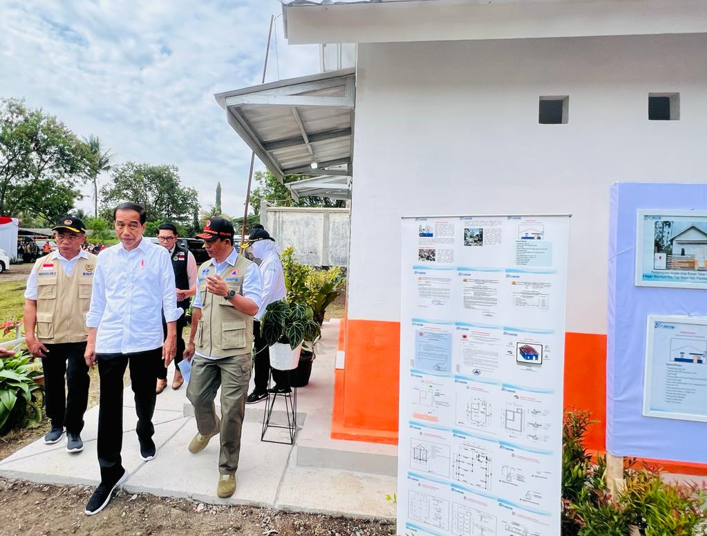 INDONESIAUPDATE.ID – Presiden RI Joko Widodo (Jokowi) meninjau rumah contoh tahan gempa di Yonif Raider 300, Kecamatan Karangtengah, Kabupaten Cianjur, Provinsi Jawa Barat, pada Kamis (08/12/2022). Kepala Badan Nasional Penanggulangan Bencana (BNPB) Suharyanto menjelaskan bahwa rumah contoh tersebut merupakan salah satu skema untuk perbaikan rumah warga terdampak gempa Cianjur.