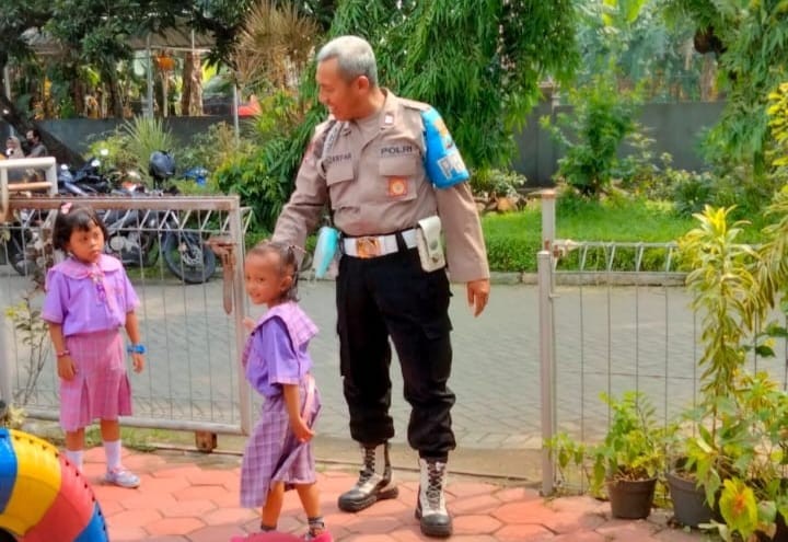 INDONESIAUPDATE.ID – Menghilangkan kesan Polisi yang menakutkan di mata anak-anak, Bhabinkamtibmas Polresta Sidoarjo, Polda Jatim sambangi TK yang ada di masing-masing desa binaan. Seperti yang dilakukan oleh salah satu Bhabinkamtibmas desa Sidorejo, Kecamatan Krian, Sidoarjo Kamis (9/12/2022).