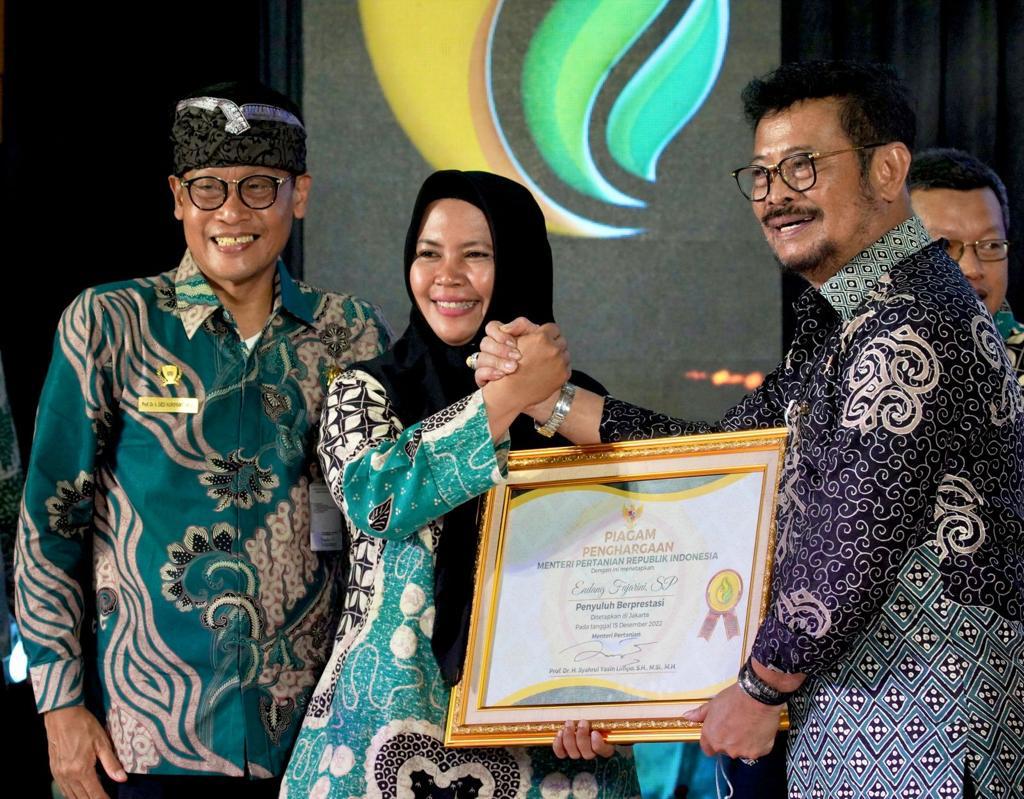 Penghargaan ini diberikan langsung Mentan Syahrul pada acara Harmonisasi dan Apresiasi SDM Pertanian tahun 2022 tanggal 15 Desember 2022 di Kampus Politeknik Pembangunan Pertanian (Polbangtan) Bogor.