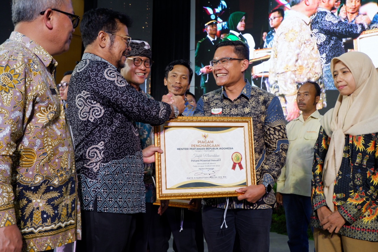 Penghargaan ini diberikan langsung Mentan Syahrul pada acara Harmonisasi dan Apresiasi SDM Pertanian tahun 2022 tanggal 15 Desember 2022 di Kampus Politeknik Pembangunan Pertanian (Polbangtan) Bogor.