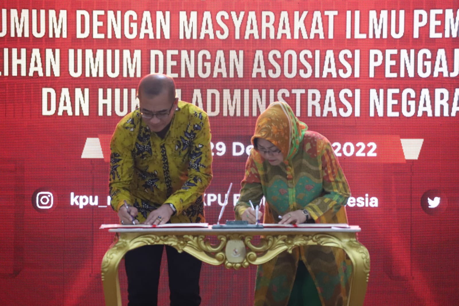Selain MIPI, nota kesepahaman ini juga ditandatangani oleh Asosiasi Ilmu Politik Indonesia (AIPI) dan Asosiasi Pengajar Hukum Tata Negara dan Hukum Administrasi Negara (APHTN-HAN). Kegiatan ini digelar secara hybrid dari Ruang Rapat KPU, Jakarta Pusat, Kamis (29/12/2022).