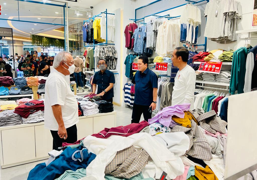 Tiba sekitar pukul 20.15 WIB, Presiden Jokowi didampingi Menteri Sekretaris Negara Pratikno, Menteri PUPR Basuki Hadimuljono, dan Menteri BUMN Erick Thohir langsung berjalan masuk untuk menyapa warga dan berswafoto di lantai dasar mal. Melihat antusiasme warga yang juga menyapa dari lantai atas, Presiden bersama para menteri pun kemudian naik menuju lantai 1 dengan menggunakan eskalator.