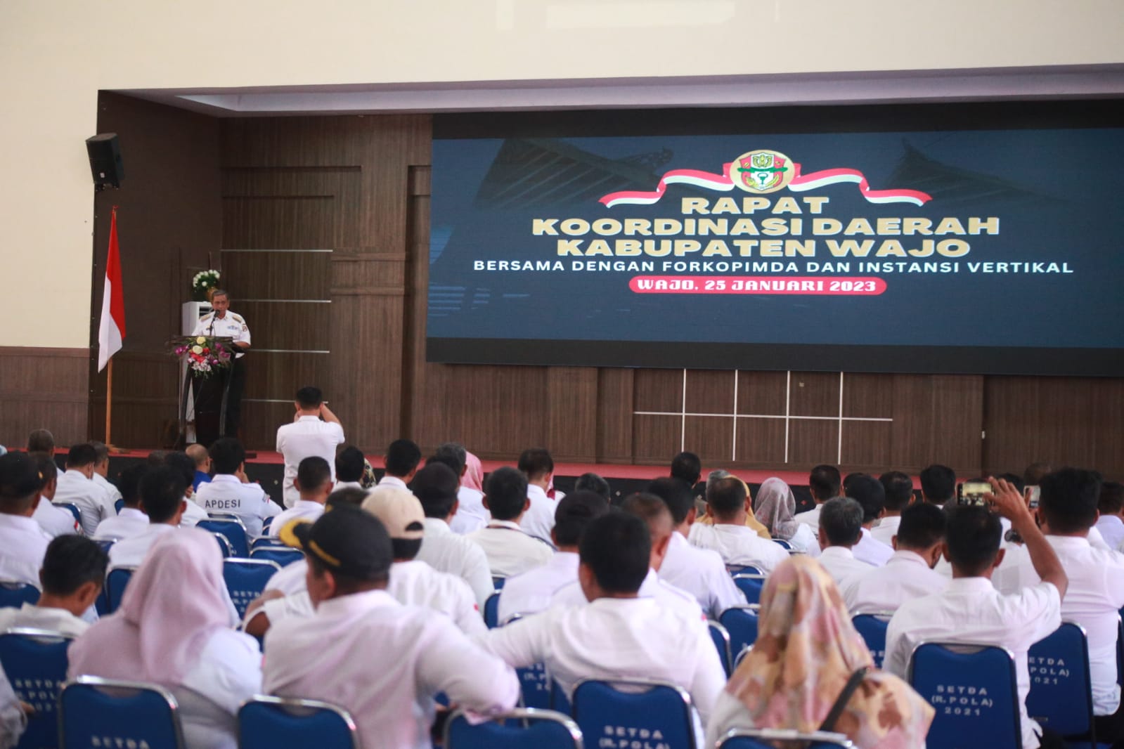 Rakorda berlangsung di Ruang Pola Kantor Bupati Wajo, Rabu (25/1/2023), yang dibuka Amran Mahmud didampingi Forkopimda dan Sekretaris Daerah Wajo, Armayani. Para peserta terdiri atas kepala perangkat daerah lingkup Pemkab Wajo, camat, lurah, kepala desa, dan instansi vertikal se-Wajo.