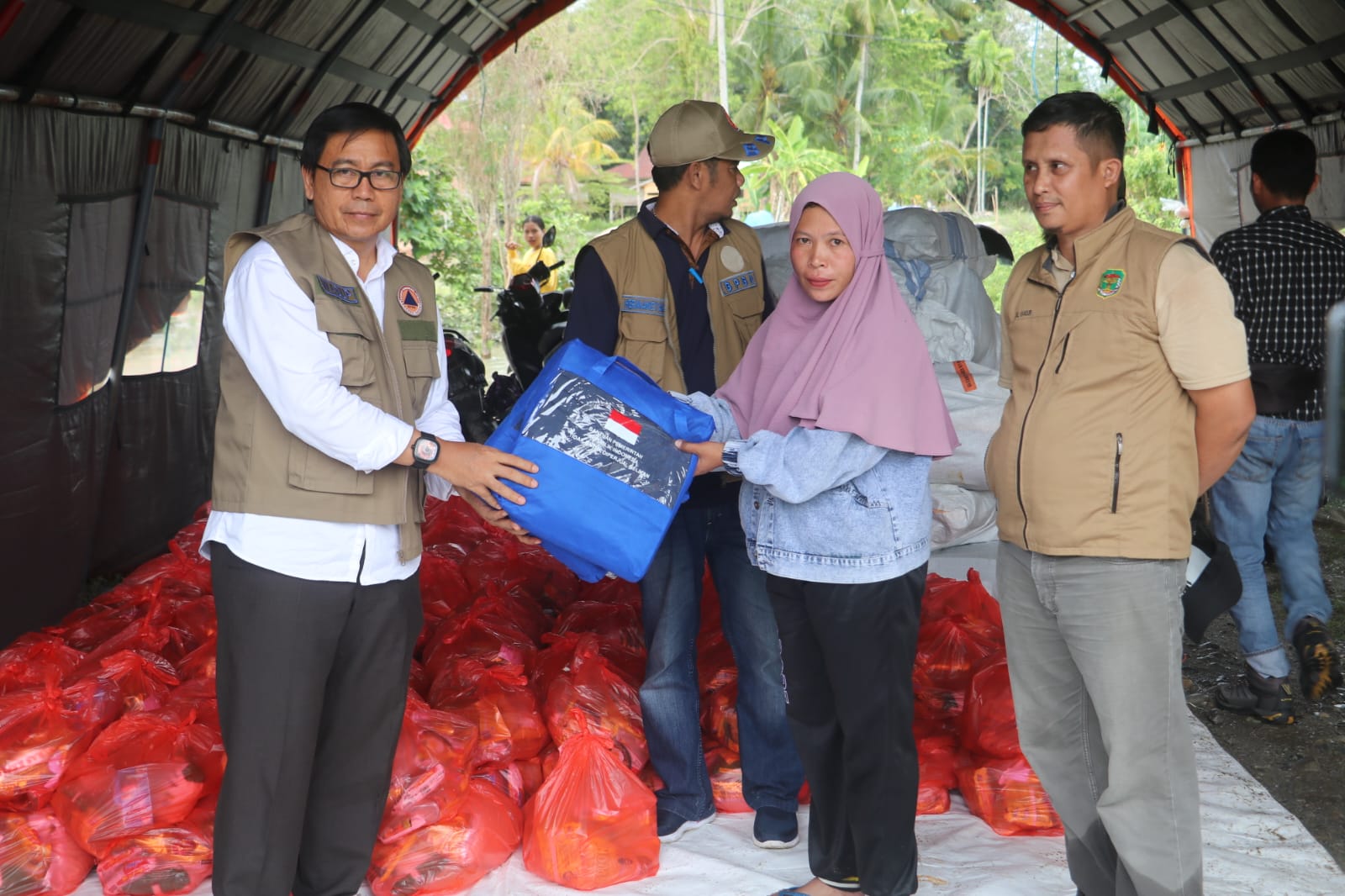 Suaib juga menyerahkan 140 paket bantuan logistik, berupa makanan, matras, terpal dan selimut kepada korban banjir.