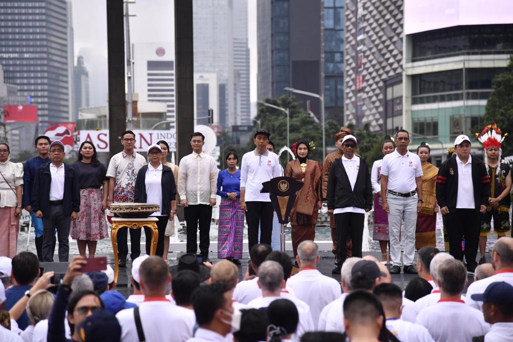 INDONESIAUPDATE.ID – Acara Kick Off Keketuaan Indonesia di ASEAN tahun 2023 diselenggarakan di Bundaran Hotel Indonesia pada hari Minggu (29/01) pagi. Acara ini ditandai dengan alat musik rebana biang yang dipukul oleh Presiden Joko Widodo di Bundaran Hotel Indonesia dan disaksikan ribuan masyarakat. Presiden Joko Widodo menyampaikan optimisme ASEAN akan tetap relevan, menciptakan Indo Pasifik yang damai dan stabil, serta menjadi pusat pertumbuhan ekonomi.