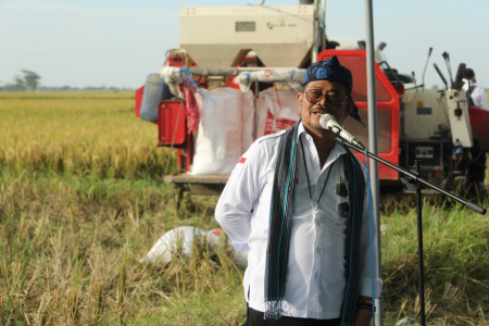 Al Muktabar menjelaskan, panen raya padi kali ini dilaksanakan di luasan hamparan 630 hektare, dengan varietas padi M400 dan Indeks Pertanaman 200 (IP200) dan provitas 7 ton/hektar.