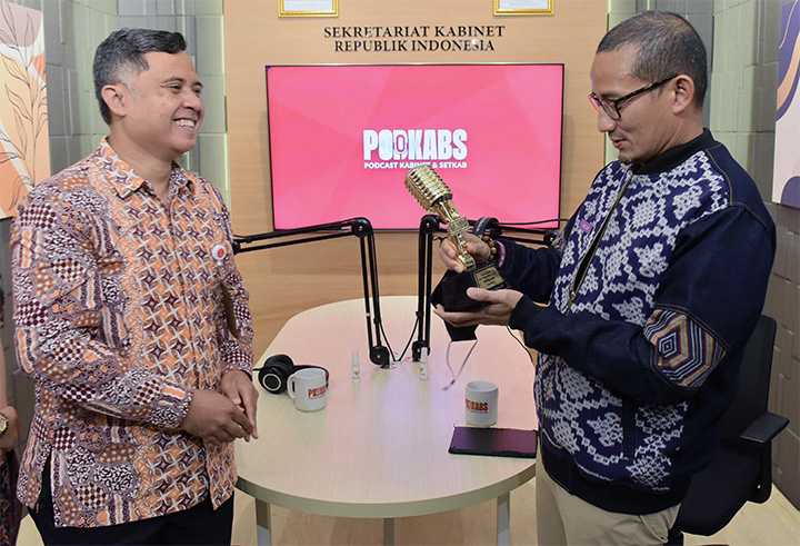 Menparekraf Sandiaga Uno dan Deputi DKK saat berada di Studio Podkabs. (Foto: Humas Setkab/Jay)