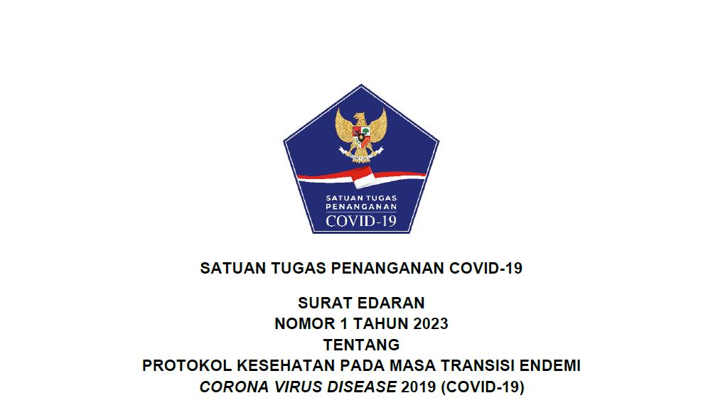 INDONESIAUPDATE.ID – Satuan Tugas (Satgas) Penanganan COVID-19 mengeluarkan Surat Edaran (SE) Nomor 1 Tahun 2023 tentang Protokol Kesehatan pada Masa Transisi Endemi Corona Virus Disease 2019 (COVID-19).