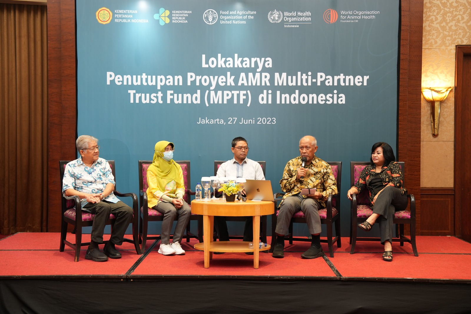 “Upaya bersama yang dilakukan dalam proyek AMR-MPTF mulai dari tahun 2021 hingga 2023 telah membantu pemerintah, terutama dalam mendorong implementasi Rencana Aksi Nasional untuk Pengendalian AMR di Indonesia tahun 2020-2024,” ungkap Nuryani Zainuddin, Direktur Kesehatan Hewan, Direktorat Jenderal Peternakan dan Kesehatan Hewan, Kementerian Pertanian. “AMR adalah salah satu ancaman terbesar bagi kesehatan masyarakat global dan pembangunan ekonomi, dan program ini telah meningkatkan kesadaran pemangku kepentingan utama dalam mengurangi dampak AMR pada manusia, hewan, dan lingkungan dengan adanya saling sinergi,” lanjut Nuryani.