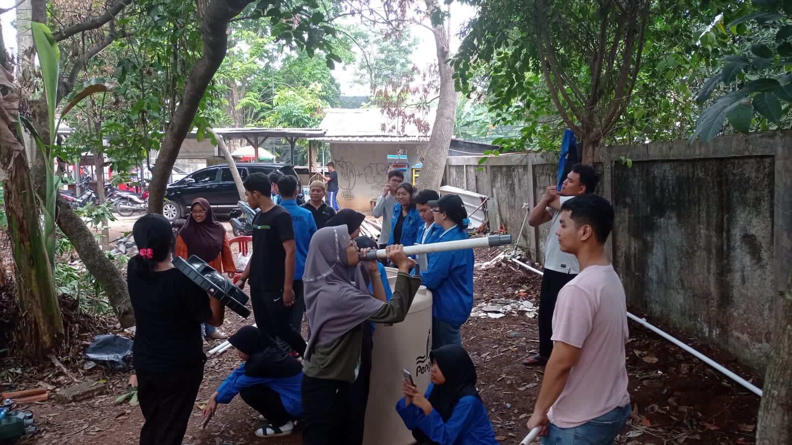 Dengan berakhirnya kegiatan Selasa pagi itu, akhirnya telah terpasang 1 torant air ukuran 500 liter untuk penampungan air, sumur bor air sebagai sumber air, 3 titik sprinkle air dan pipa penyalur air yang mengelilingi taman Poly Sekar Asri.