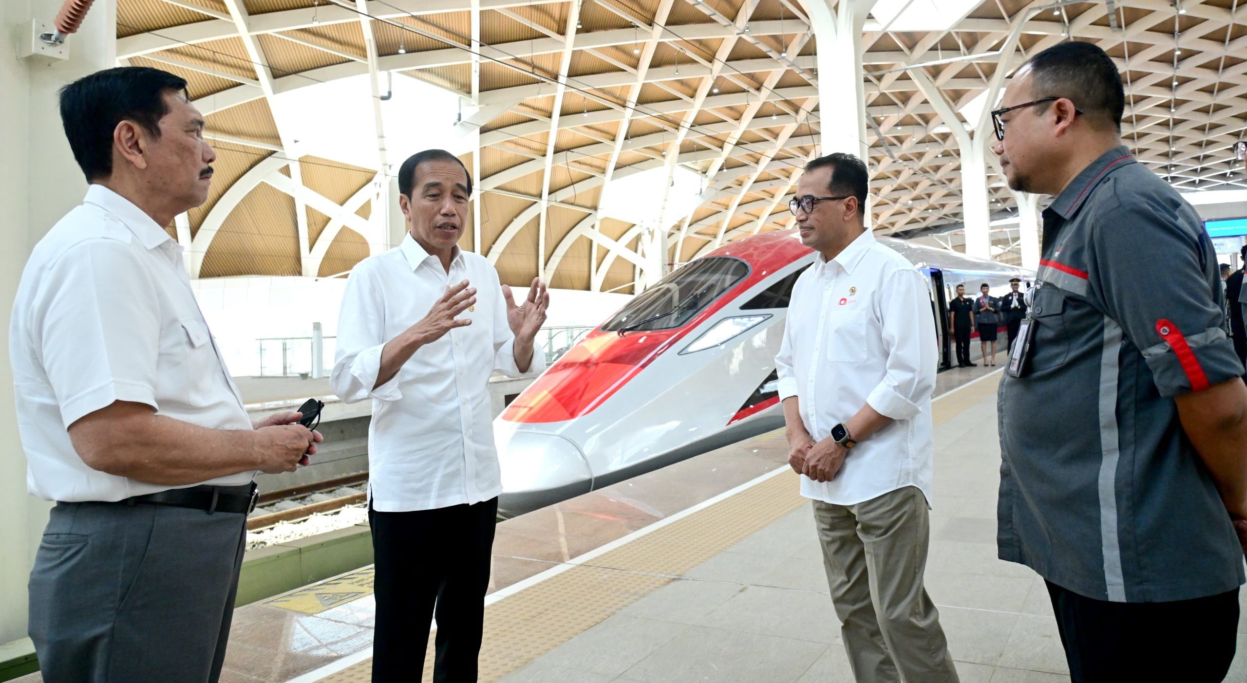 “Kita harapkan akan ada perpindahan dari penggunaan mobil pribadi ke kereta cepat, ke LRT, ke MRT, dan ke Transjakarta, sehingga kemacetan di jalan bisa dikurangi, polusi bisa dikurangi. Kita arahnya ke situ. Karena setiap tahun kita kehilangan lebih dari Rp 100 triliun per tahun karena kemacetan di Jabodetabek dan Bandung,” ujar Presiden.