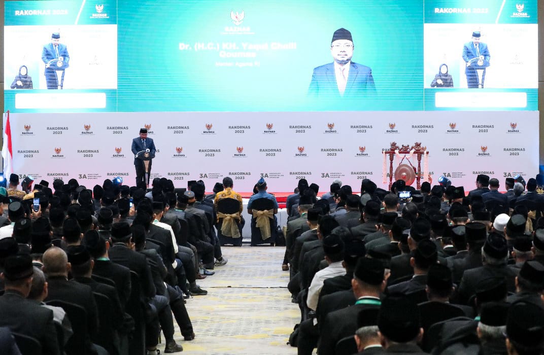 INDONESIAUPDATE.ID – Menteri Agama (Menag) RI Yaqut Cholil Qoumas menyampaikan sambutan pada Rapat Koordinasi Nasional (Rakornas) Badan Amil Zakat Nasional (BAZNAS) 2023 yang diselenggarakan pada Rabu (20/9/2023), di Hotel Sultan, Jakarta.