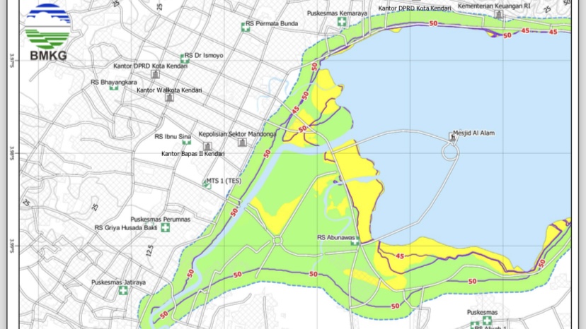 Sedangkan hasil riset kebencanaan beberapa pihak, Kota Kendari sendiri memiliki potensi probabilitas tsunami dengan ketinggian lebih dari 3 meter sebesar 0,2 persen. Pada perhitungan saintifik, tinggi maksimum tsunami dengan periode berulang 100 tahun dapat mencapai 1,4 m, 500 tahun 2,9 tahun dan 2.500 tahun 6,5 m.