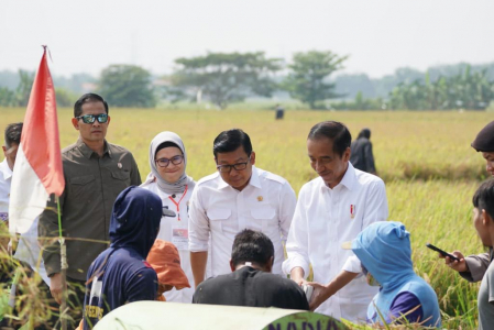 Presiden mengaku senang melihat hasil panen di Indramayu. Menurutnya, hal ini bisa menjadi momentum untuk terus menggenjot produksi nasional.