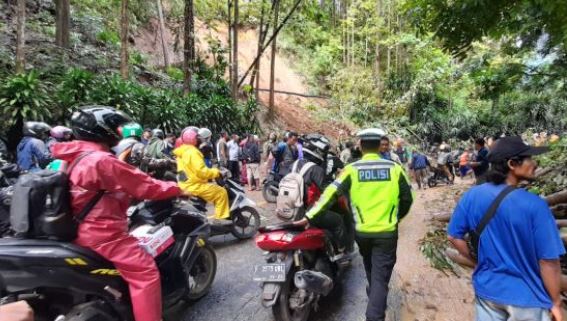 Kasat Lantas Polresta Bogor Kota Kompol Galih April mengatakan anggotanya diterjunkan begitu longsor terjadi pada Jumat (13/10) malam. Kendaraan tonase besar dilarang untuk melintas guna keselamatan bersama.