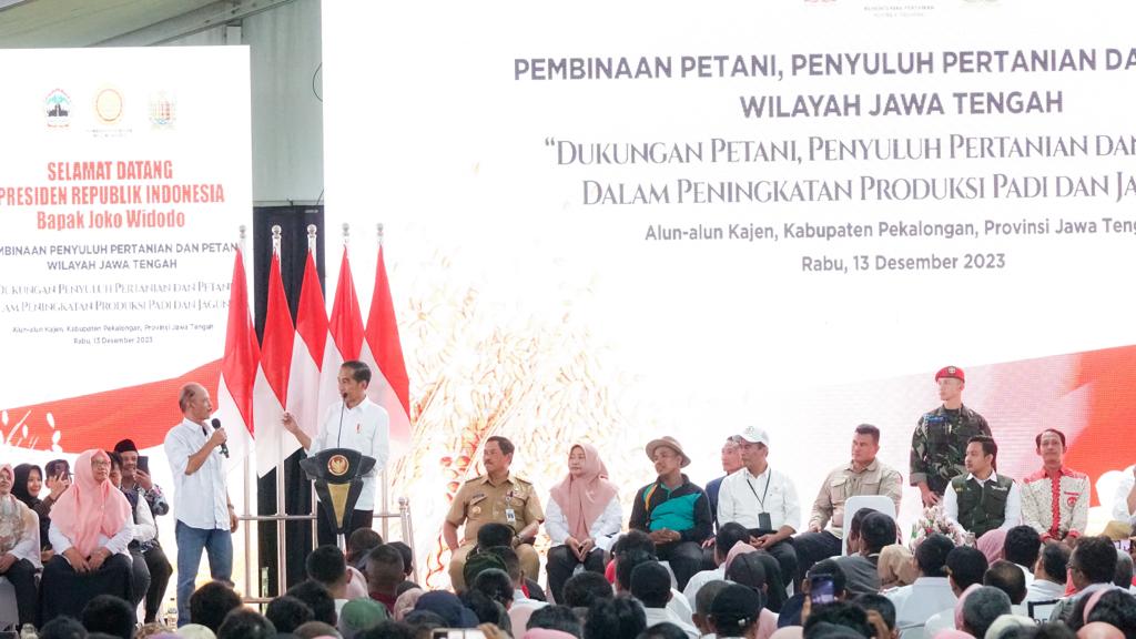 “Dunia sekarang ini sedang krisis pangan, karena pandemi belum selesai, memperbaiki ekonomi belum selesai, sudah masuk perubahan iklim sehingga ada gelombang panas yang panjang, menyebabkan banyak gagal panen di semua negara dan sekarang ini terjadi krisis pangan , harga pangan naik” kata Presiden Jokowi di Alun – Alun Kajen, Pekalongan.