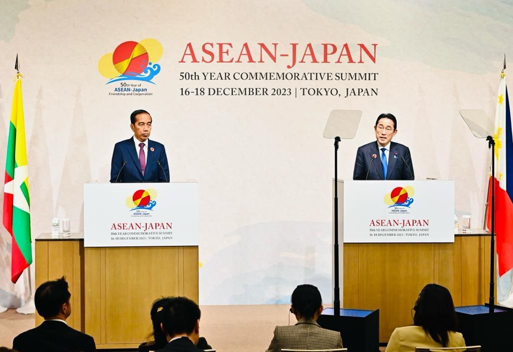 “Para pemimpin ASEAN juga menyampaikan apresiasi atas dukungan penuh Jepang untuk implementasi dan pengutamaan ASEAN Outlook on the Indo-Pacific dan menyambut baik rencana KTT Mekanisme Trilateral antara Jepang, RRT [Republik Rakyat Tiongkok], dan Korea Selatan sebagai wujud habit of dialogue,” ujar Presiden saat menyampaikan keterangan pers bersama Perdana Menteri (PM) Jepang Fumio Kishida, di Hotel The Okura, Tokyo, Jepang, Minggu (17/12/2023).
