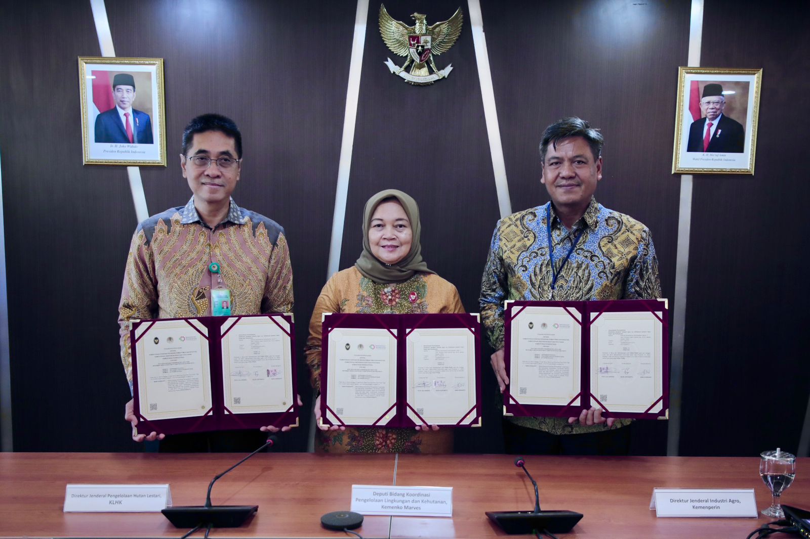 Sinergi antar kementerian ini, tertuang dalam penandatanganan Perjanjian Kerja Sama (PKS) tentang pertukaran dan pemanfaatan data bahan baku kayu dan produk olahan kayu (Interkoneksi sistem informasi produk industri kehutanan), yang telah ditandatangani oleh Deputi Bidang Pengelolaan Lingkungan dan Kehutanan Kemenko Marves Nani Hendiarti, Plt. Dirjen Pengelolaan Hutan Lestari KLHK Agus Justianto, serta Dirjen Industri Agro Kemenperin Putu Juli Ardika di Jakarta, Kamis (14/12).