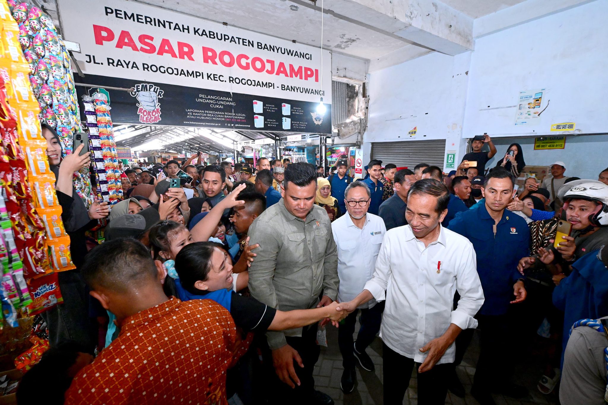 INDONESIAUPDATE.ID – Presiden Joko Widodo mengunjungi Pasar Rogojampi, Kabupaten Banyuwangi, Provinsi Jawa Timur, pada Rabu, 27 Desember 2023. Kunjungannya ke pasar tersebut adalah untuk mengecek harga sejumlah kebutuhan pokok.