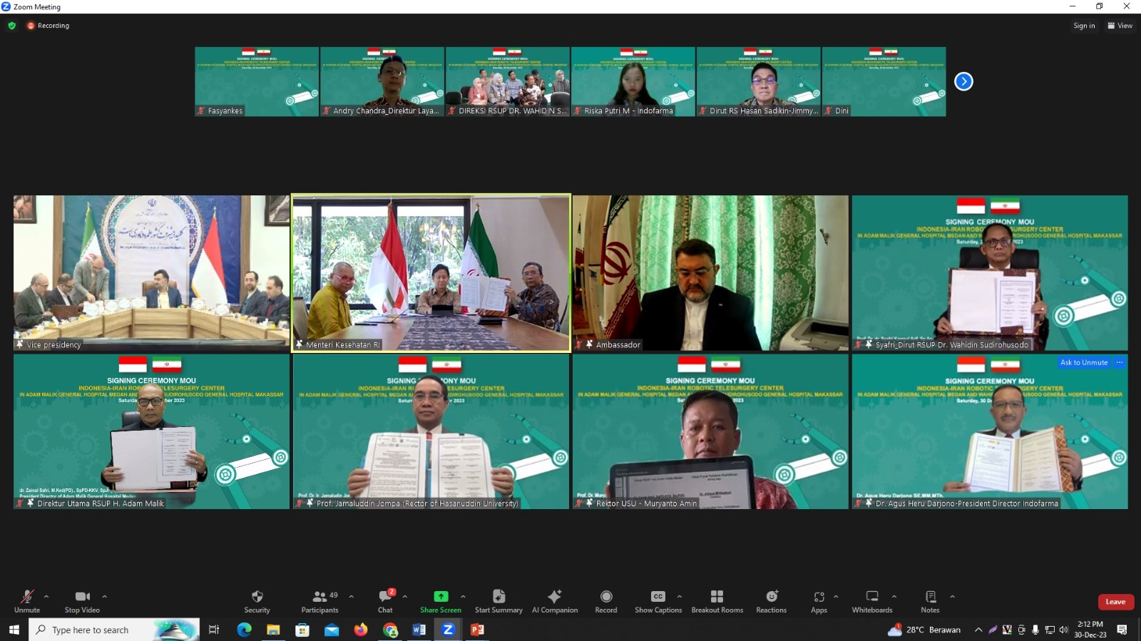 Hal ini ditandai dengan penandatanganan MoU Robotic Telesurgery Center di RSUP HAM hasil kerja sama Indonesia-Iran, yang dilaksanakan secara daring dan diikuti oleh manajemen RSUP HAM dari Medan pada Sabtu (30/12/2023).