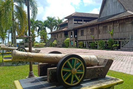 Nah, apa keunikan lainnya dari Istana Kuning? Di istana itu, ada empat bangunan dengan arsitektur berbeda. Sebuah bangunan dikenal sebagai bangsal berarsitektur rumah bentang khas Dayak. Di sebelahnya terdapat Balai Rumbang dengan ornamen dan beberapa sentuhan rumah khas Tiongkok.