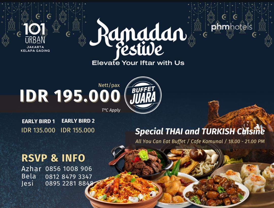 INDONESIAUPDATE.ID – Siap menjadi tempat pilihan Bukber pertama di area Jakarta Utara. Hotel 1O1 URBAN Jakarta Kelapa Gading hadirkan citra rasa baru pada momen Ramadhan tahun ini.dengan menghadirkan BUFFET JUARA di Ramadan Festive 2024.