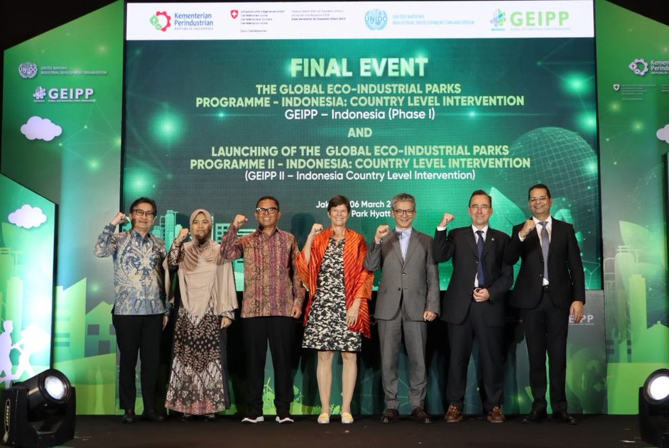 Pada 6 Maret lalu, dilaksanakan penandatanganan Final Event Global Eco-Industrial Parks Programme – Indonesia (GEIPP-Indonesia) Phase I serta peluncuran Phase II, yang menjadi momentum penting dalam upaya menjaga keberlanjutan ekonomi dan lingkungan Indonesia. Ini merupakan wujud nyata dari hasil kerja sama antara Kemenperin dengan United Nations Industrial Development Organization (UNIDO) dan Kedutaan Besar Konfederasi Swiss.