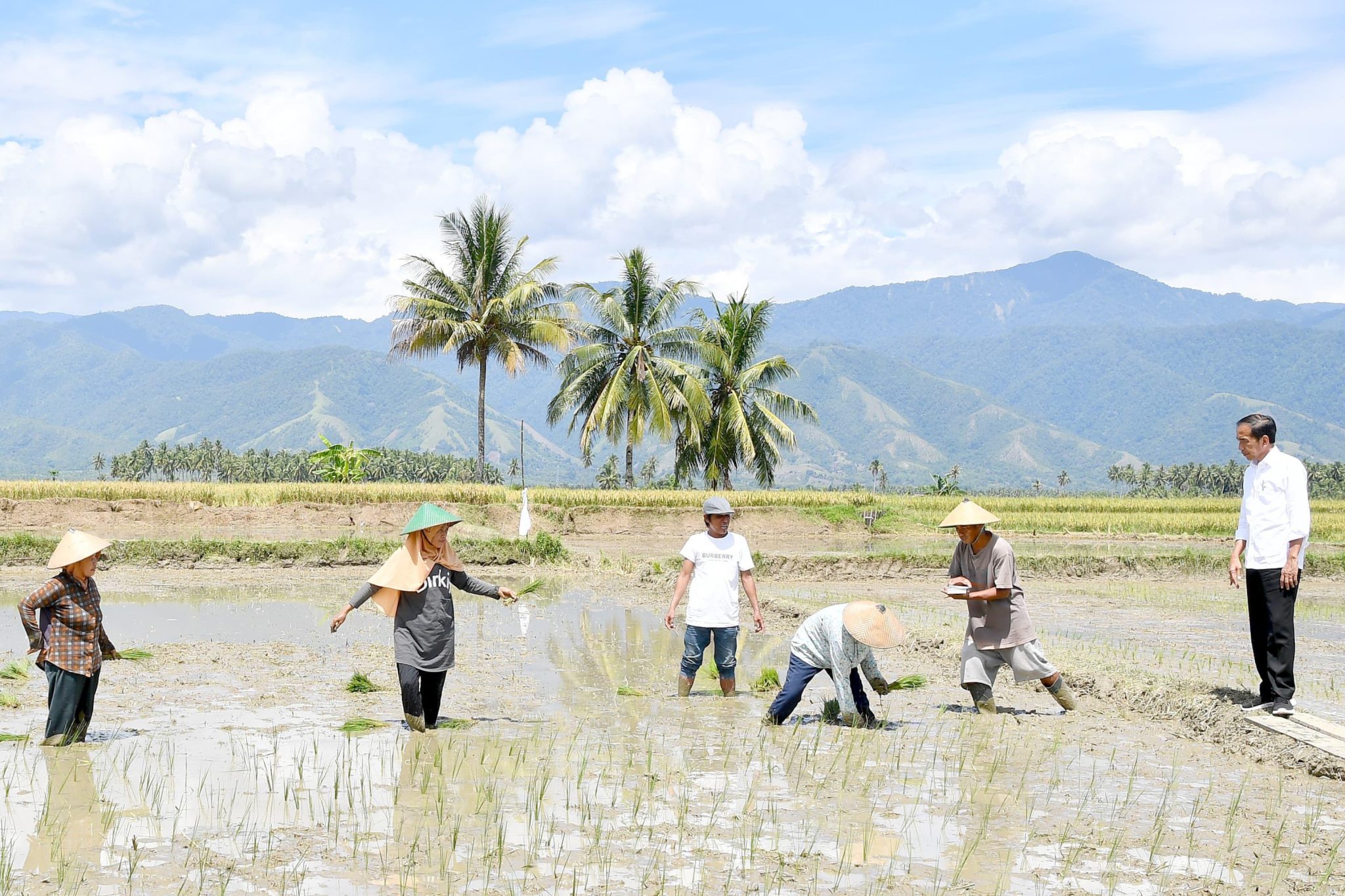 Turut mendampingi Presiden Jokowi dalam kegiatan tersebut yaitu Menteri Pertanian Andi Amran Sulaiman, Menteri Pekerjaan Umum dan Perumahan Rakyat Basuki Hadimuljono, Menteri Kesehatan Budi Gunadi Sadikin, Menteri Perhubungan Budi karya Sumadi, Gubernur Sulawesi Tengah Rusdy Mastura, dan Bupati Sigi Mohamad Irwan.
