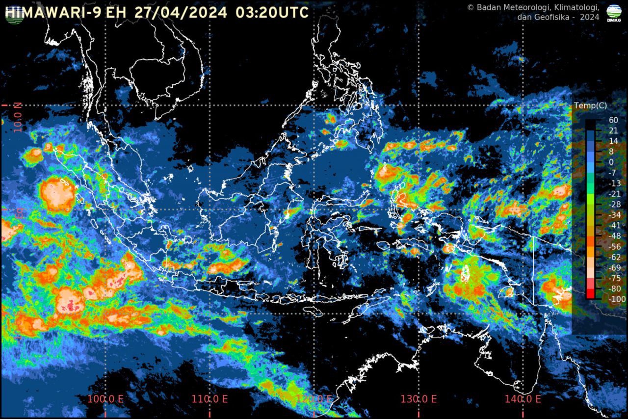 Deputi Bidang Meteorologi BMKG, Guswanto di Jakarta, Sabtu (27/4/2024) mengungkapkan bahwa dalam sepekan ke depan, BMKG mengidentifikasi masih adanya potensi peningkatan curah hujan secara signifikan, yakni di sebagian besar Sumatera, Jawa bagian barat dan tengah, sebagian Kalimantan dan Sulawesi, Maluku dan Sebagian besar Papua.